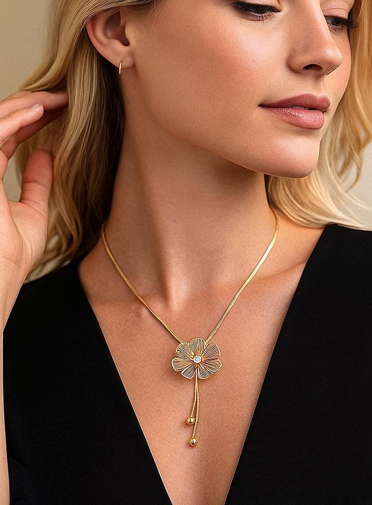 The delicate flower charm symbolizes beauty, growth, and positivity — making this accessory both stylish and meaningful.