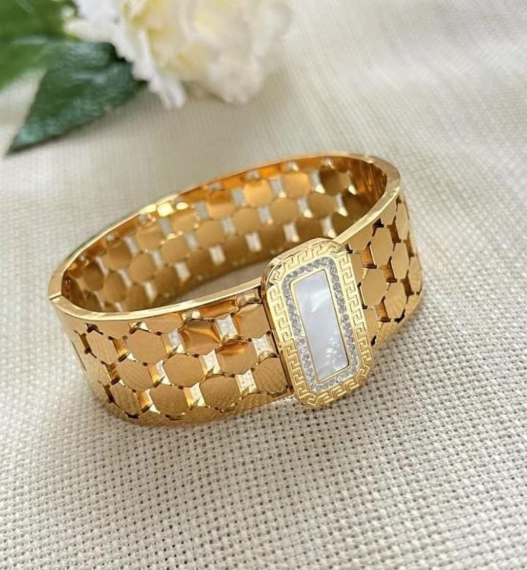 Add a touch of sophistication to your accessory collection with the Golden Honey Comb Square Bracelet, available at My Jwel. Designed with a distinctive honeycomb square pattern in a shimmering golden finish, this bracelet effortlessly combines modern style with timeless elegance. Lightweight and comfortable, it is perfect for casual outings, office wear, or festive occasions. Crafted with premium-quality materials, this bracelet is both durable and stylish, making it an ideal gift or a chic addition to your own jewelry collection.